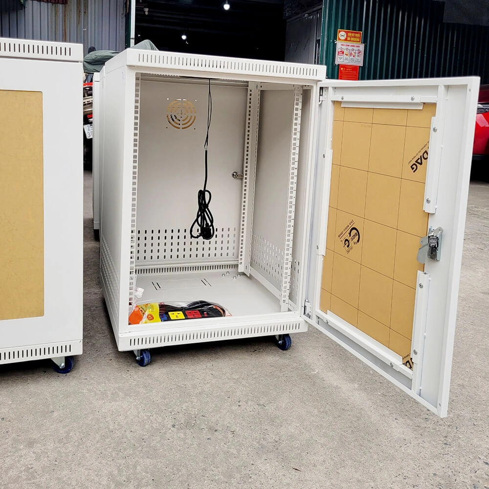 Và mỗi tủ đi kèm bộ ốc gài chuyên dụng, nguồn điện và quạt tản nhiệt, giúp bạn sẵn sàng lắp đặt ngay khi nhận hàng.