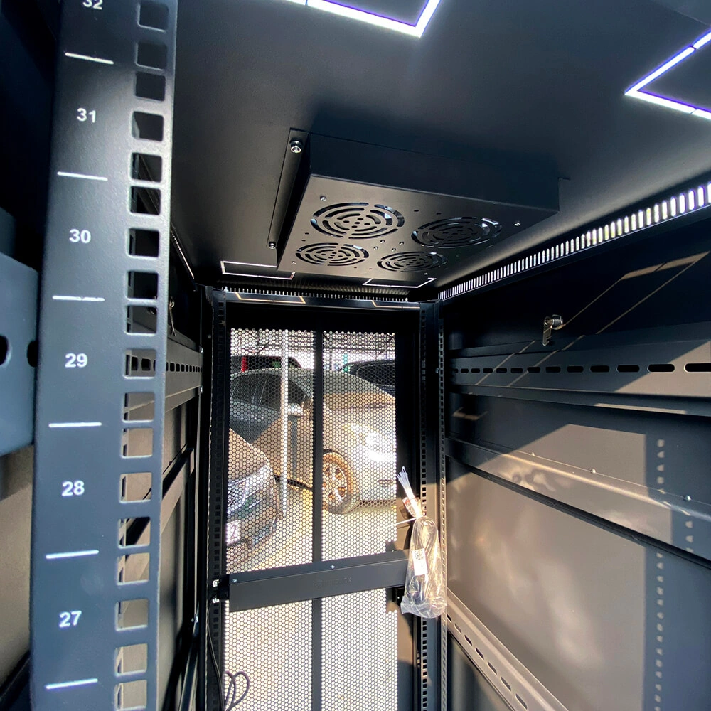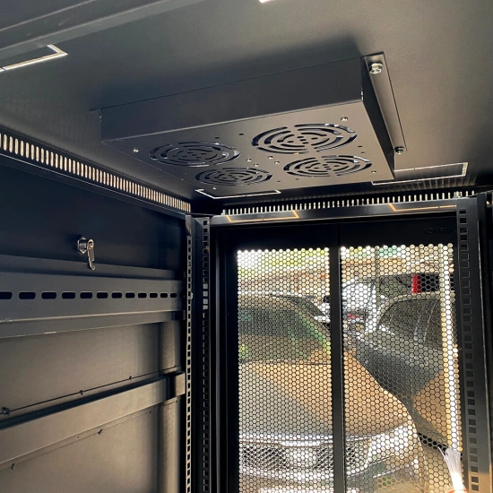 Ngoài ra, Unirack đã tích hợp sẵn hệ thống tản nhiệt mạnh mẽ gồm 4 quạt thông gió (120mm - 20W/220V) được lắp đặt ở đỉnh tủ, giúp đẩy khí nóng ra ngoài liên tục, duy trì nhiệt độ ổn định cho Server.