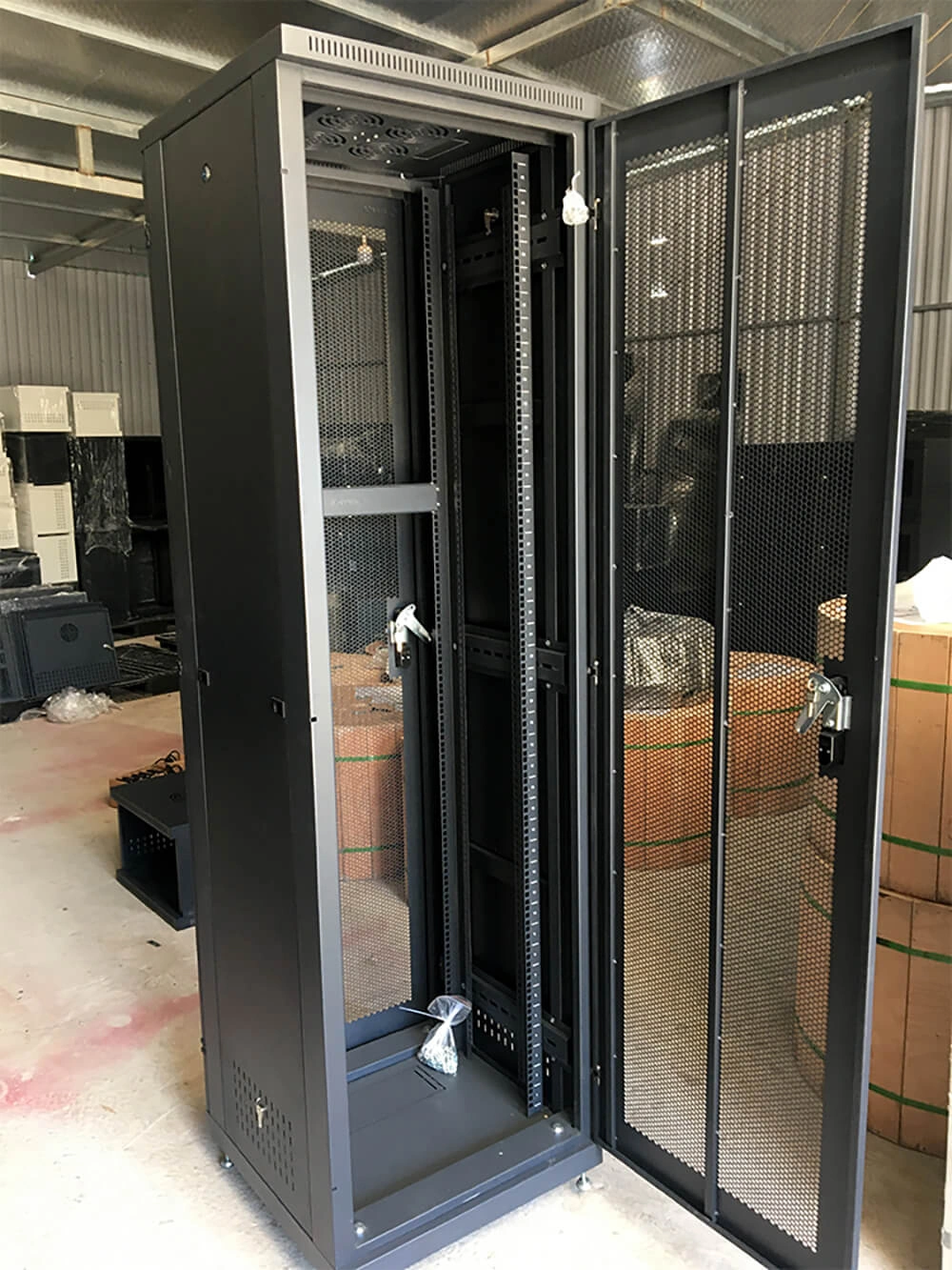 Toàn bộ tủ rack 42U này được phủ bằng sơn tĩnh điện của Jotun Thailand không chỉ chống han gỉ, mà còn làm tăng thêm vẻ đẹp và độ bền đẹp cho chiếc tủ rack này.