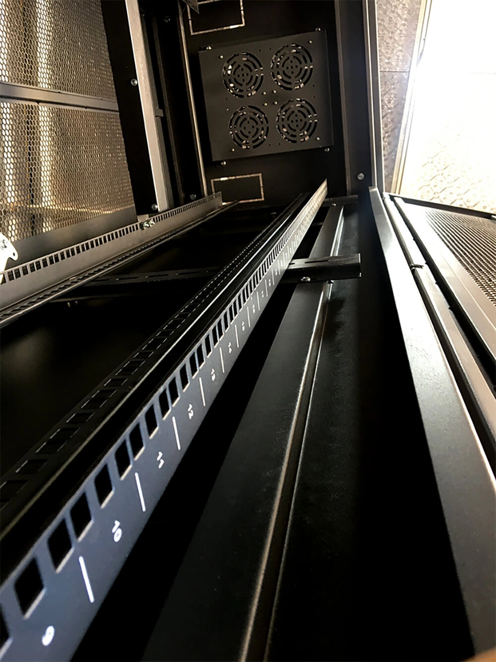 - Hệ thống làm mát bằng quạt tản nhiệt có tác dụng giúp các thiết bị bên trong như: Switch, Router, Server, không bị nóng lên trong quá trình hoạt động, và giúp không gian bên trong luôn được làm mát.