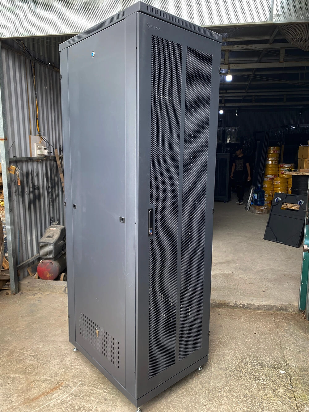 Toàn bộ tủ rack 42U này được phủ bằng sơn tĩnh điện của Jotun Thailand không chỉ chống han gỉ, mà còn làm tăng thêm vẻ đẹp và độ bền đẹp cho chiếc tủ rack này.