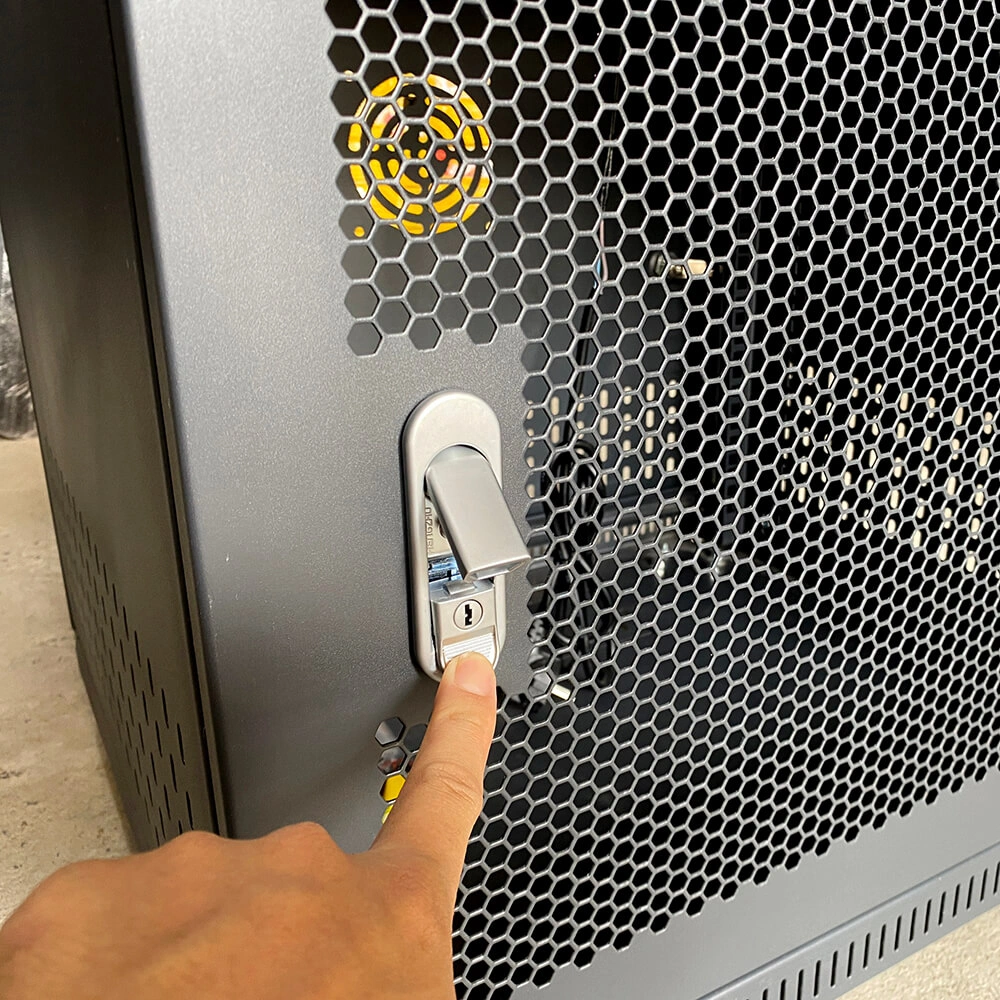Điểm khác biệt của tủ rack Unirack và cũng là điểm được khách hàng yêu thích ở kích thước tủ rack 9U chính là cánh cửa trước dạng lưới tổ ong.